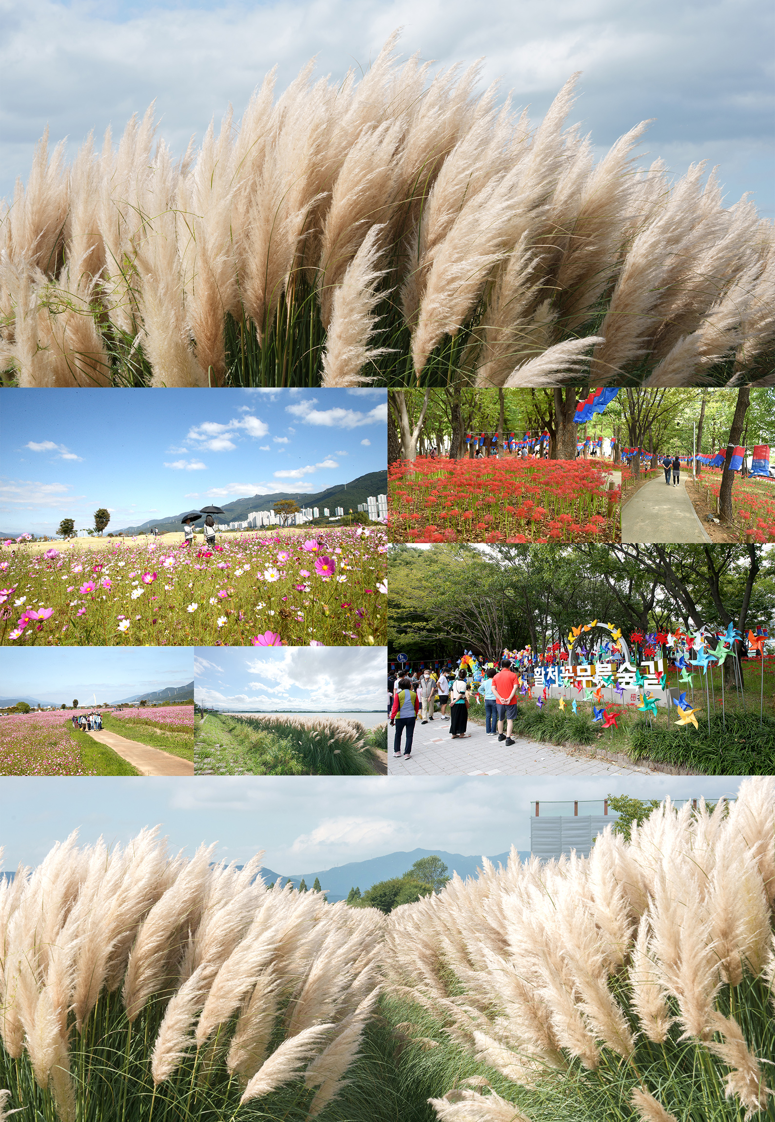 가을의 낭만이 가장 깊어지는 시간, 하루의 끝자락엔 서낙동강 둘레길이 제격입니다. 해가 강물 위로 천천히 내려앉으면, 강변을 가득 메운 팜파스그래스가 빛나기 시작합니다. 사람 키를 훌쩍 넘는 은빛 꽃술이 바람결에 흔들릴 때마다 황금빛 물결이 일렁이는 듯, 눈앞에 비현실적인 가을의 풍경이 펼쳐집니다. 산책하듯 느린 걸음을 옮기며 둘레길을 따라가다 보면, 어느새 가을의 한복판에 서 있는 듯한 기분을 느낄 수 있습니다. 귀에는 사각이는 풀잎 소리가 울리고, 눈에는 강물 위로 번지는 윤슬이 가득 담깁니다. 서쪽 하늘이 붉게 물들기 시작하면 둘레길은 또 한 번의 절정을 맞습니다. 빛을 머금은 팜파스는 ‘투명한 보석’처럼 반짝이고, 노을빛이 강물과 하늘을 물들일 때 풍경 전체가 ‘한 폭의 그림’처럼 다가옵니다. 잠시 발걸음을 멈추고 숨을 고르면, 이 순간이야말로 가을이 선물하는 아름다운 순간 중 하나일 것입니다. 올가을, 서낙동강 둘레길에서 그 풍경 속을 한번 걸어보는 건 어떨까요.