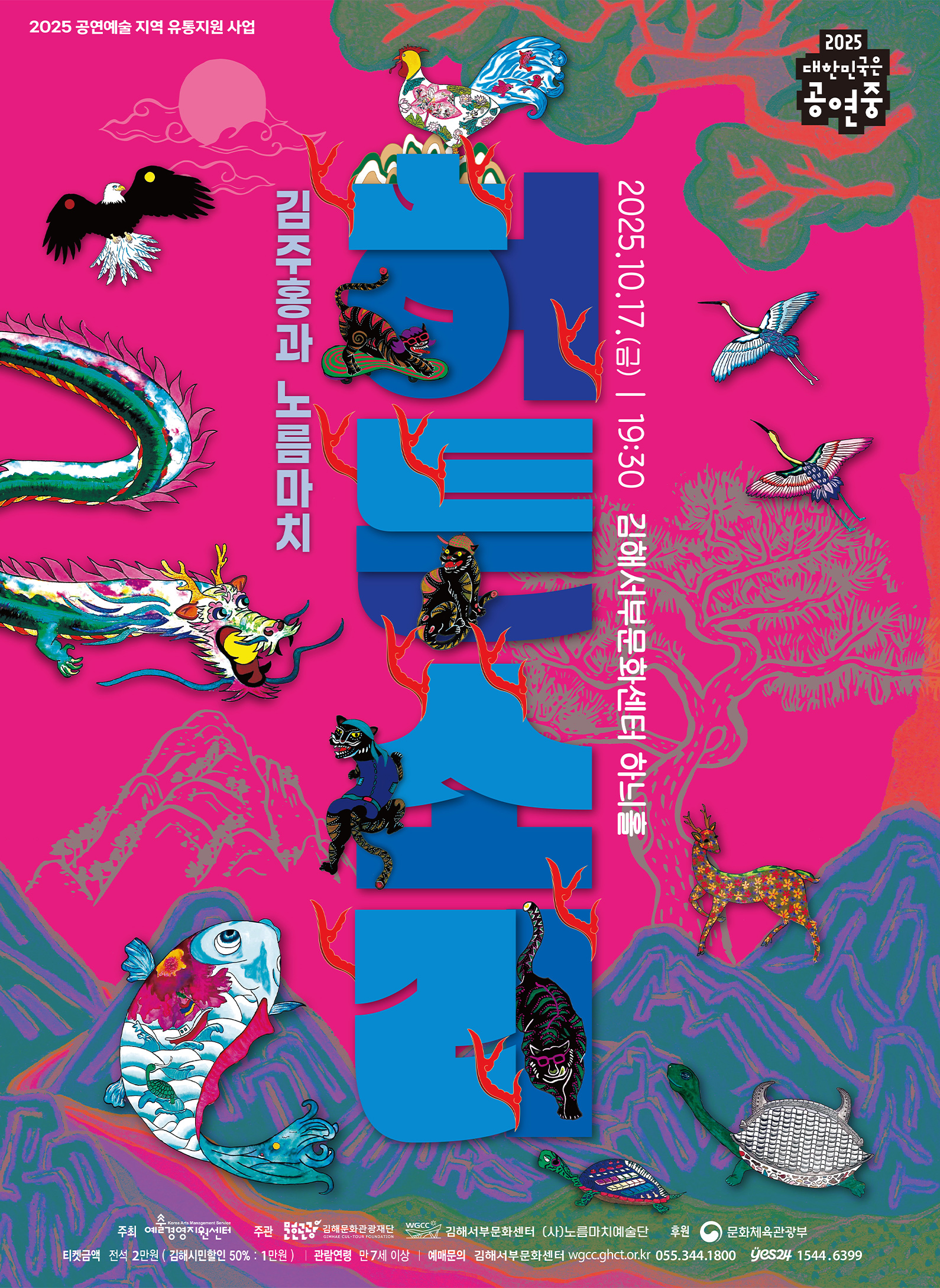 전통 타악 중심의 사운드에 현대적 감각을 더한 김주홍과 노름마치가 김해에 온다. 한국전통음악의 성음, 시김새, 호흡을 바탕으로 동시대 감각에 맞는 음악을 선보여 온 이들은, 한국 타악의 다양한 레퍼토리와 창작곡으로 국내외 관객과 소통해 왔다. ‘New Wave Korean Music Group’을 슬로건으로 내세워, 우리 소리의 DNA를 세계에 퍼뜨리며 해외 유수의 페스티벌 및 극장 무대에서 크게 활약하고 있다. 이번 공연은 전통을 새롭게 해석한 생동감 있는 무대를 통해, 온몸으로 한국 음악의 매력을 느껴볼 수 있는 시간이 될 것이다.
